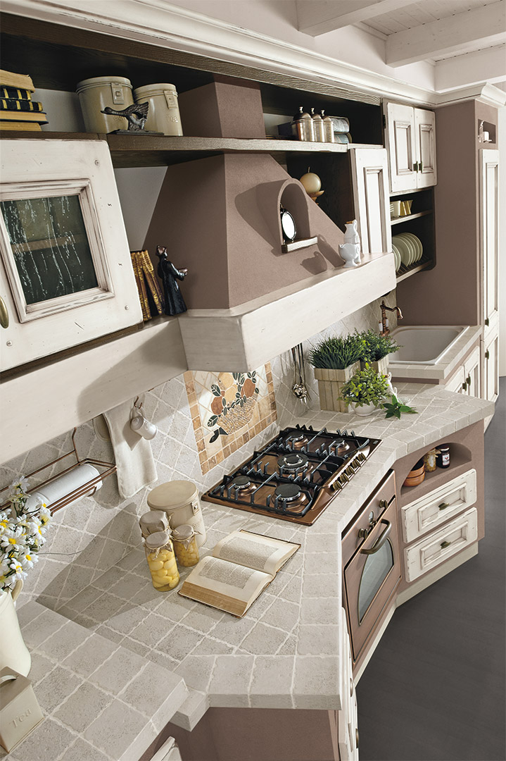 Beatrice racchiude l’immagine di una cucina dal sapore romantico. L’anta in massello di pioppo ha una cornice centrale messa in risalto da finti chiodi posizionati alle estremità degli angoli. Le finiture laccate insieme al noce antico ripropongono i colori della tradizione: caldi e importanti al tempo stesso evocano le atmosfere dei vecchi granai, le sensazioni di unione e ristoro delle famiglie di una volta, quando le giornate trascorrevano lentamente e ogni cosa veniva degustata nella sua essenza.