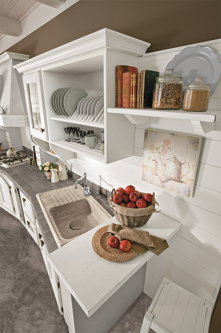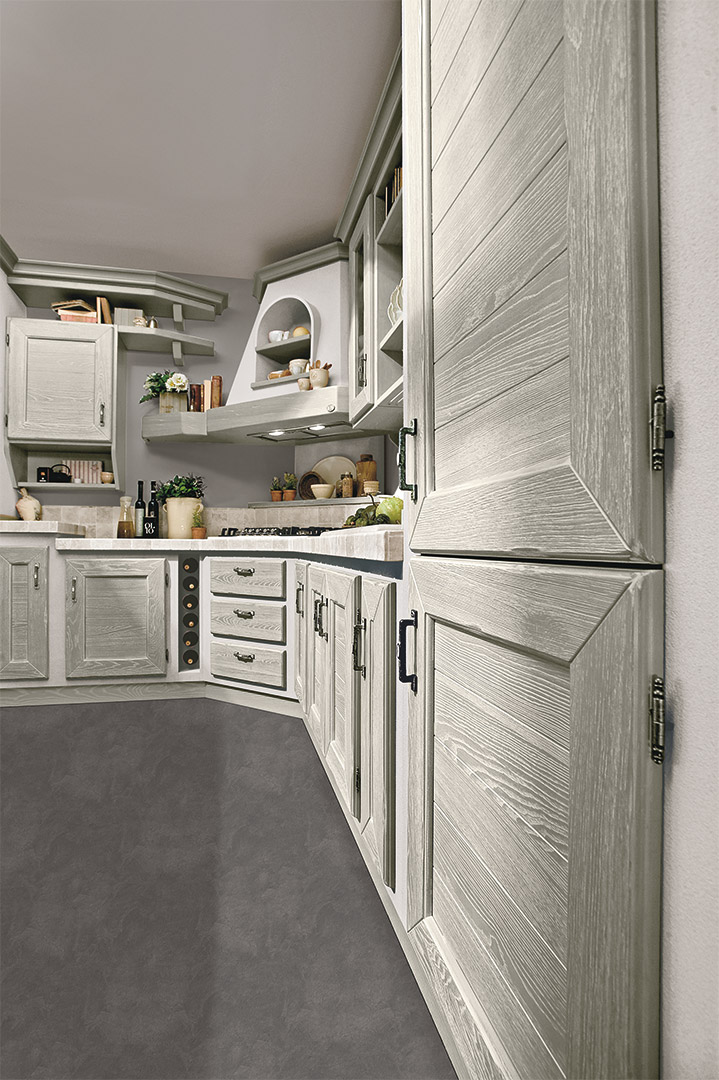 Luisa è una cucina classica in massello di frassino, telaio contraddistinto da tagli di 45° alle estremità e bugna a doghe orizzontali. I colori proposti sono quelli della natura nel susseguirsi delle stagioni: il marrone del noce antico richiama le calde sfumature dell’autunno, il bianco rustico i panorami innevati dell’inverno, la gessata il creta, i paesaggi assolati dell’estate, la freschezza e i profumi della primavera. Ogni particolare risponde ad un cura estrema della lavorazione artigianale del legno, facendo di Luisa la cucina ideale per chi ama la tradizione e il sapore genuino della cose buone di un tempo.