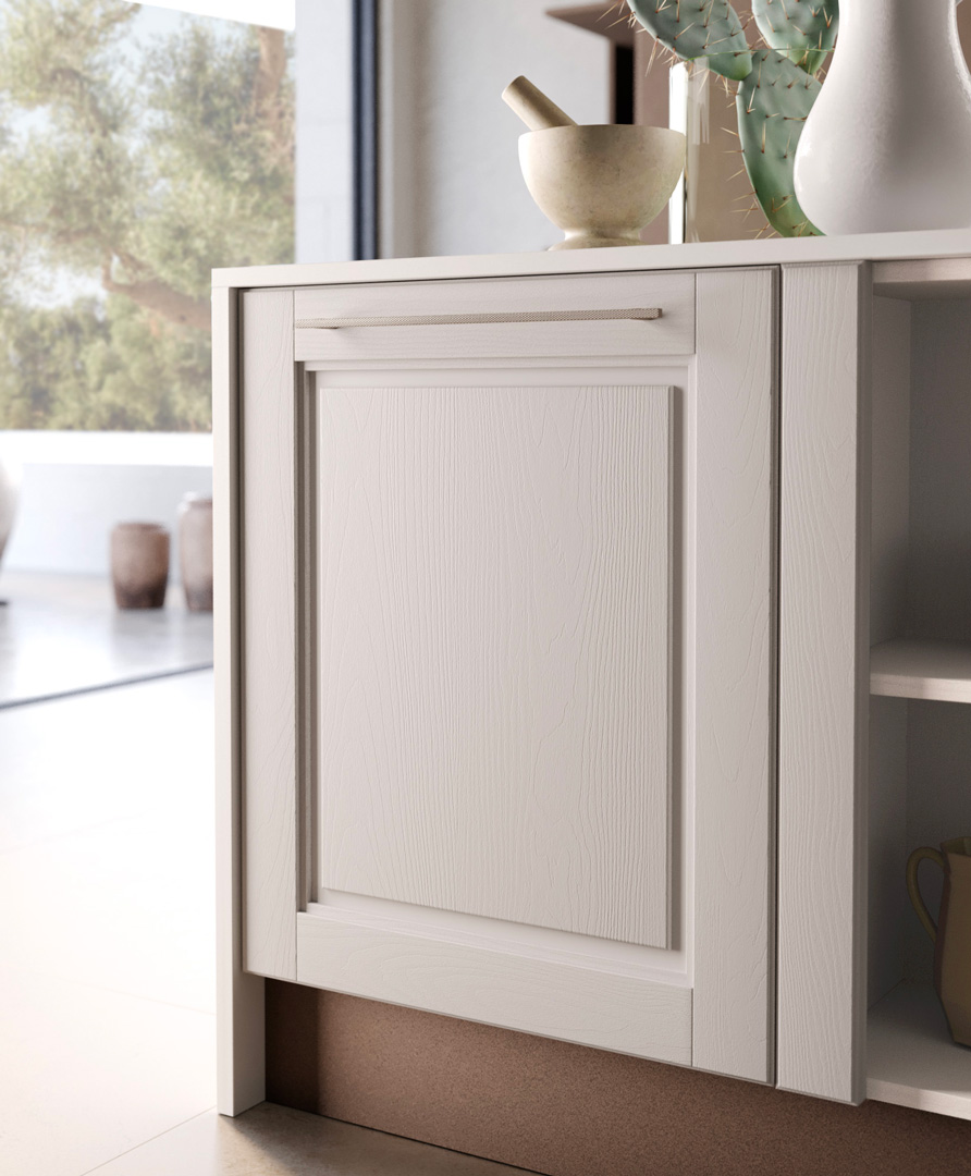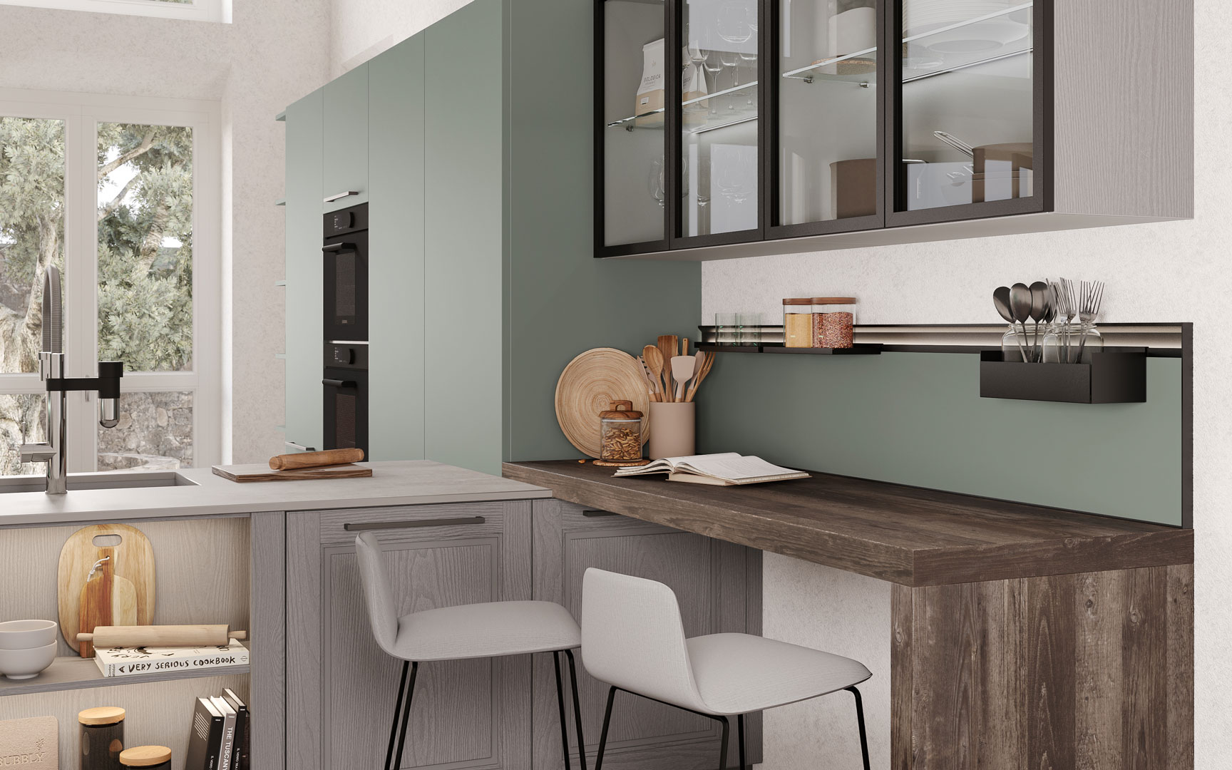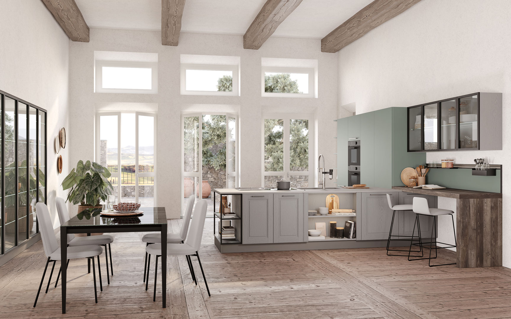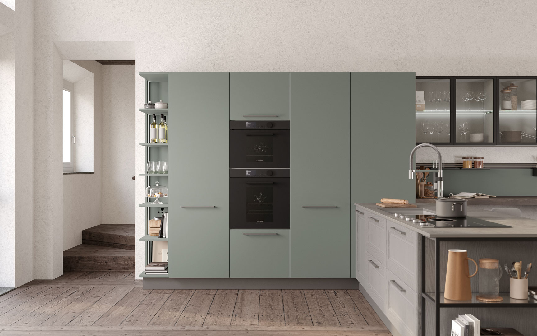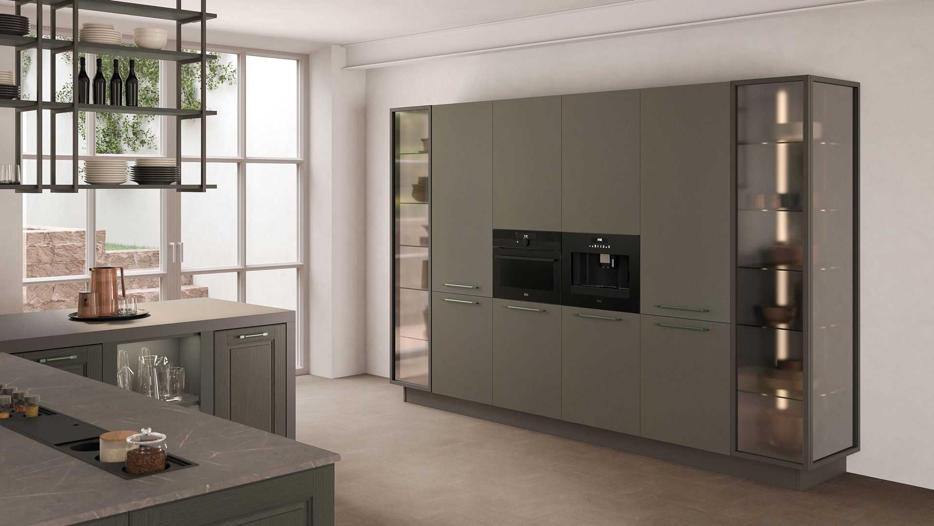 Agnese Style è la nuova cucina che sfida i canoni tradizionali per abbracciare un'estetica moderna e raffinata. Il design sempre meno classico di Agnese Style si manifesta attraverso l'utilizzo di colori e finiture di tendenza per l'anta telaio, ridefinendo così gli spazi cucina con un tocco di freschezza e innovazione.