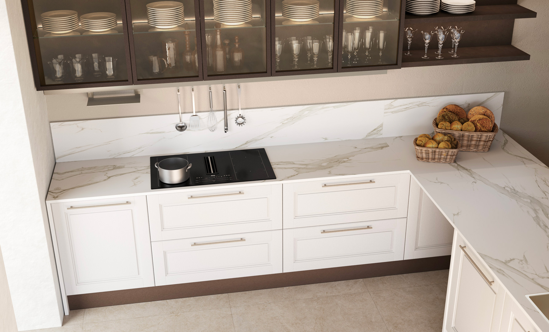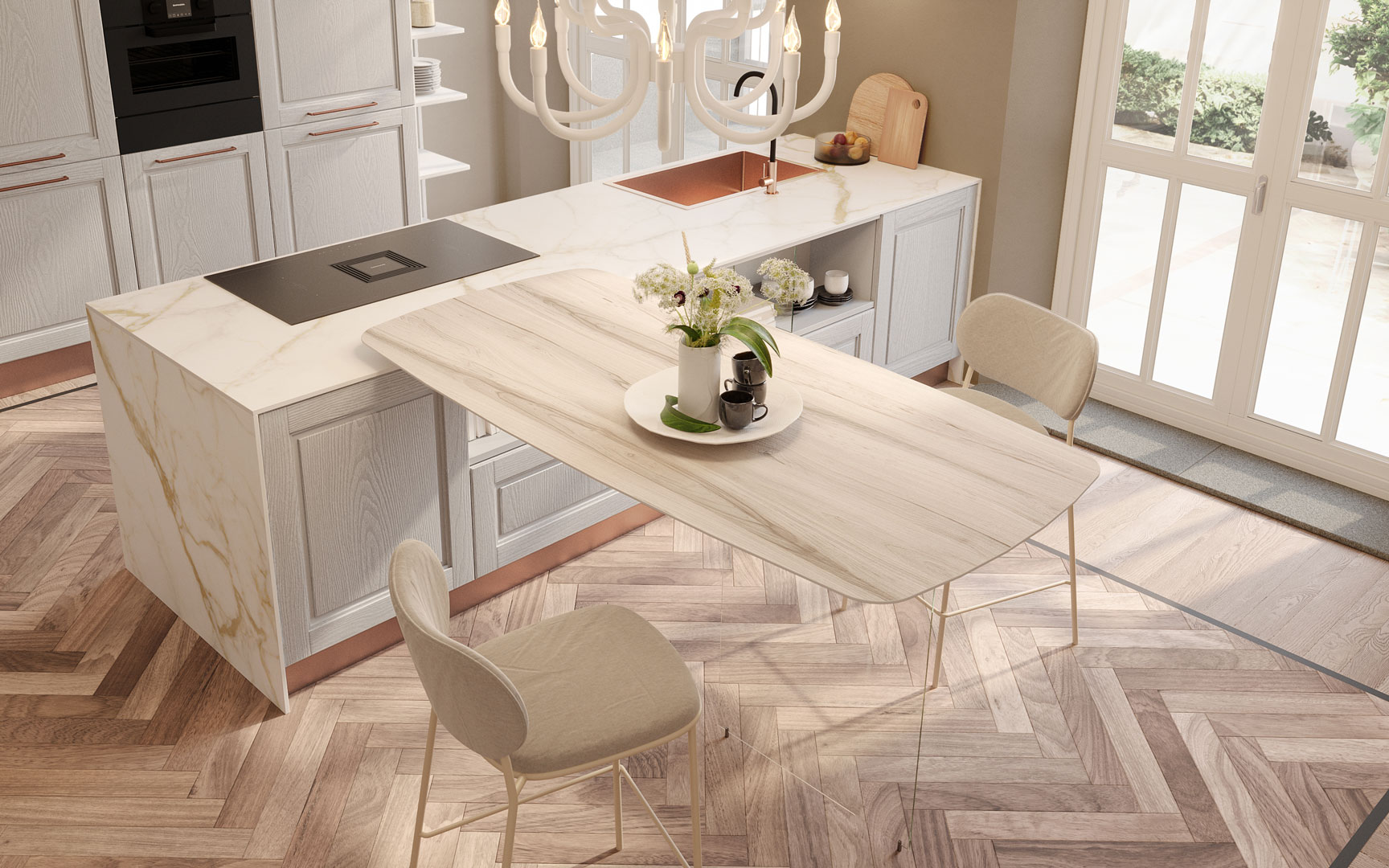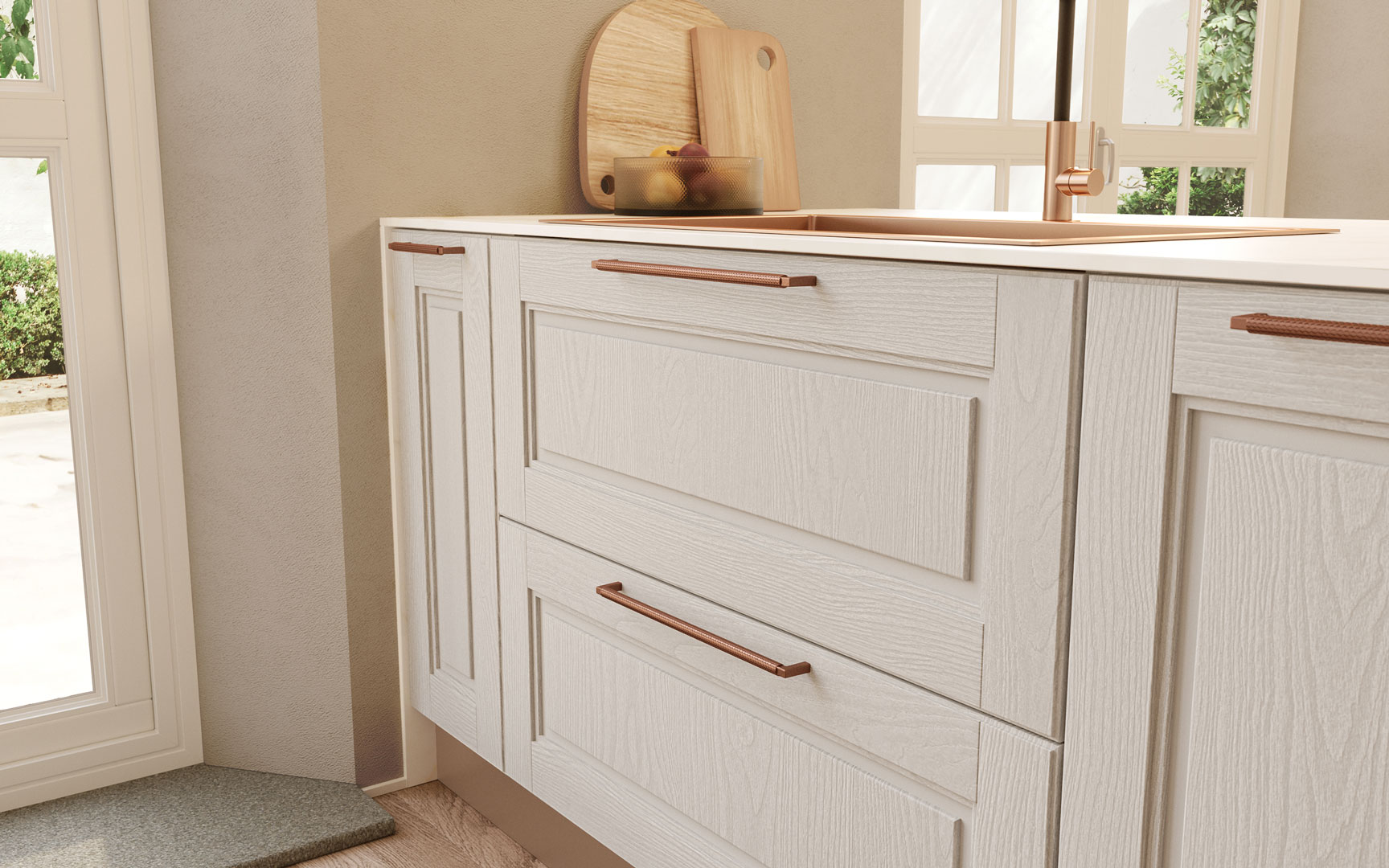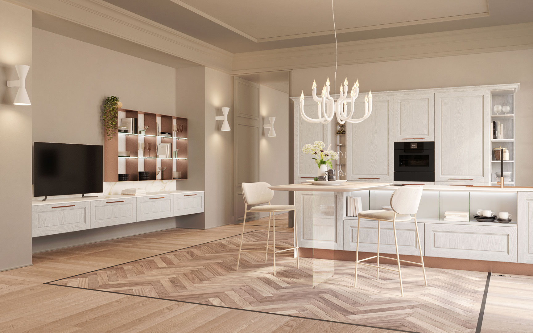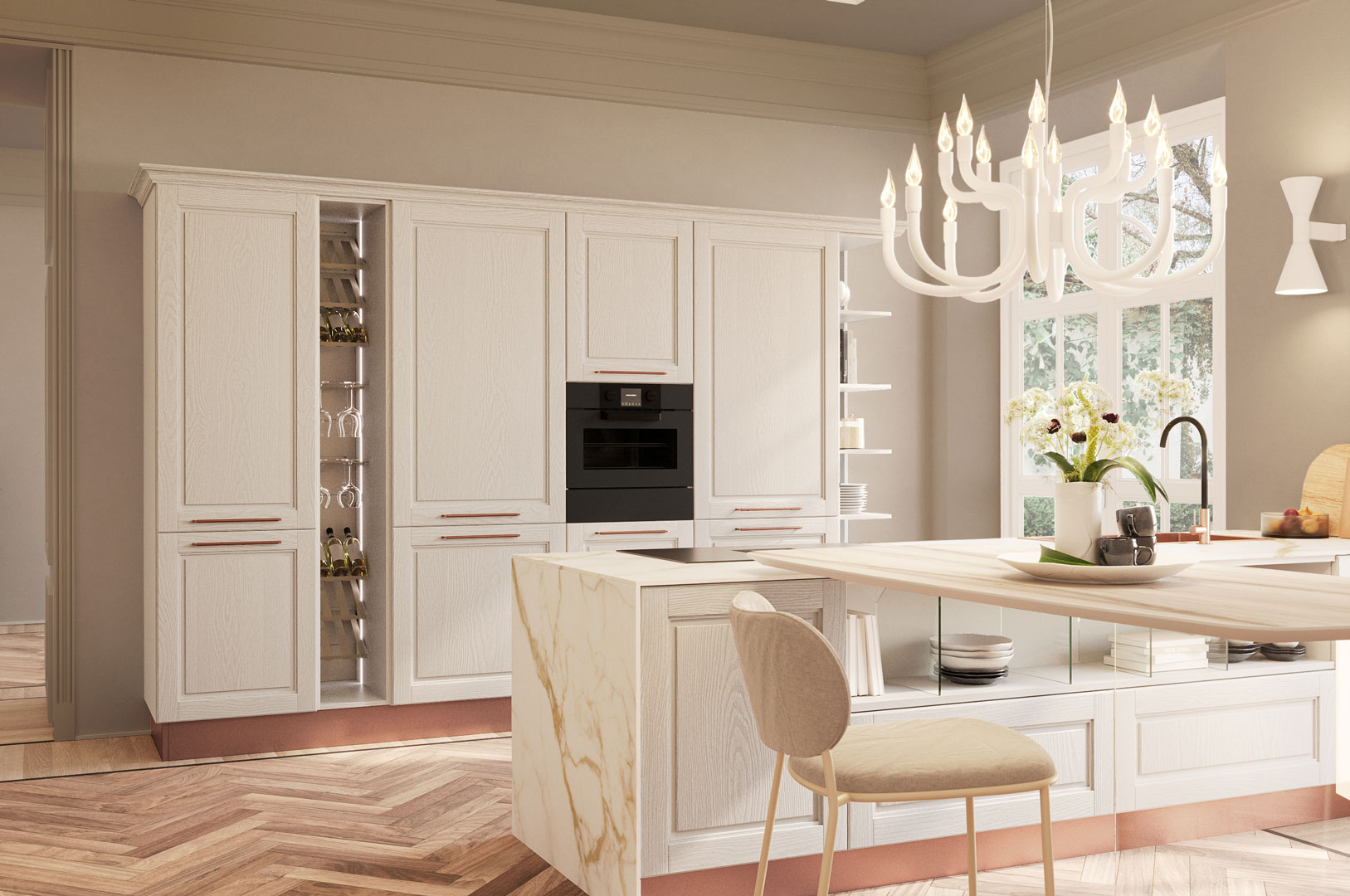 Agnese Style è la nuova cucina che sfida i canoni tradizionali per abbracciare un'estetica moderna e raffinata. Il design sempre meno classico di Agnese Style si manifesta attraverso l'utilizzo di colori e finiture di tendenza per l'anta telaio, ridefinendo così gli spazi cucina con un tocco di freschezza e innovazione.