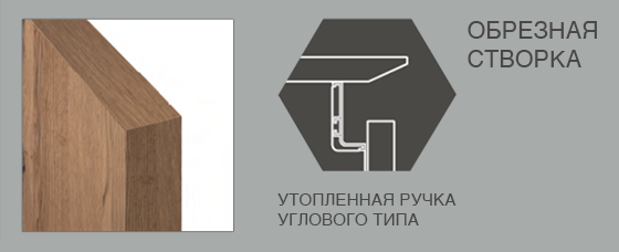 Створка толщиной 22 мм изготовлена из древесно-стружечной плиты (класс E1), облицованной с наружной стороны ламинатом Fenix? толщиной 9/10, с внутренней стороны ? ламинатом толщиной 9/10 в том же цвете, что и наружная сторона; облицовка кромки с четырех сторон полипропиленом толщиной 1 мм с помощью лазерной проклейки.